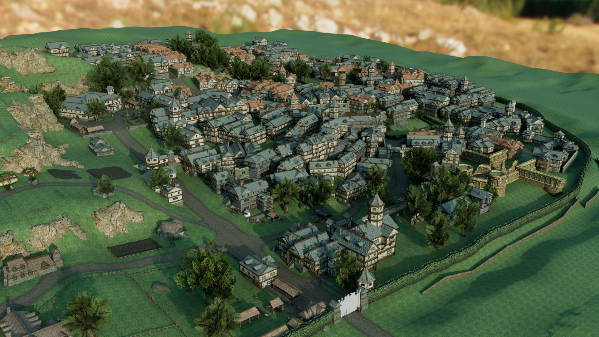 Ich habe den Torhausmesh neu gemacht und auch die UV’s sind neu. Was man da so sieht ist echte Geometry, keine Normal oder Bumpmaps. Dadurch sind die Schatten viel besser. Ein Char in LotRo hat so an die 7000 Polys, die Zwergin oben hat 15 Millionen Polygone und UNREAL zuckt nicht mal. Schon eine klasse Software.